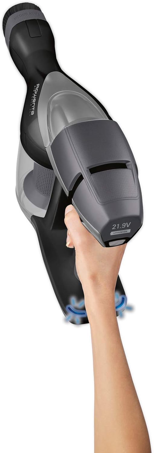 – Le Rowenta RH9079WO combine une batterie lithium-ion 21,9 V et une tête motorisée aux performances élevées (jusqu’à 6 500 tr/min) pour un nettoyage rapide de tous types de sols.