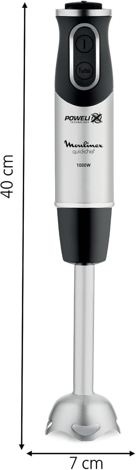 Le Moulinex DD655810 offre une puissance de 1000 W qui permet de mixer efficacement légumes, fruits, sauces ou pâtes sans forcer. Il dispose d’un pied plongeant robuste avec lames performantes pour un mix homogène et rapide. Le mixeur propose plusieurs vitesses + une fonction turbo/pulse permettant d’ajuster la texture selon le plat. Les accessoires inclus (mini‑hachoir, fouet, verre doseur) rendent l’appareil polyvalent pour hacher, émulsionner, fouetter, mixer ou préparer des soupes, compotes, smoothies. Les parties amovibles sont faciles à démonter, ce qui rend le nettoyage simple et rapide. Léger et maniable, c’est un appareil pratique pour un usage quotidien en cuisine, même dans un espace réduit
